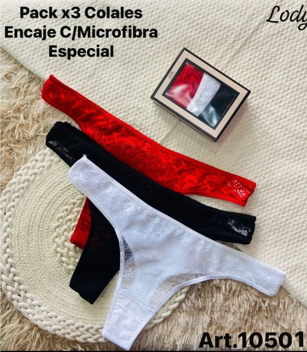 Pack 3 colalees encaje talles especial