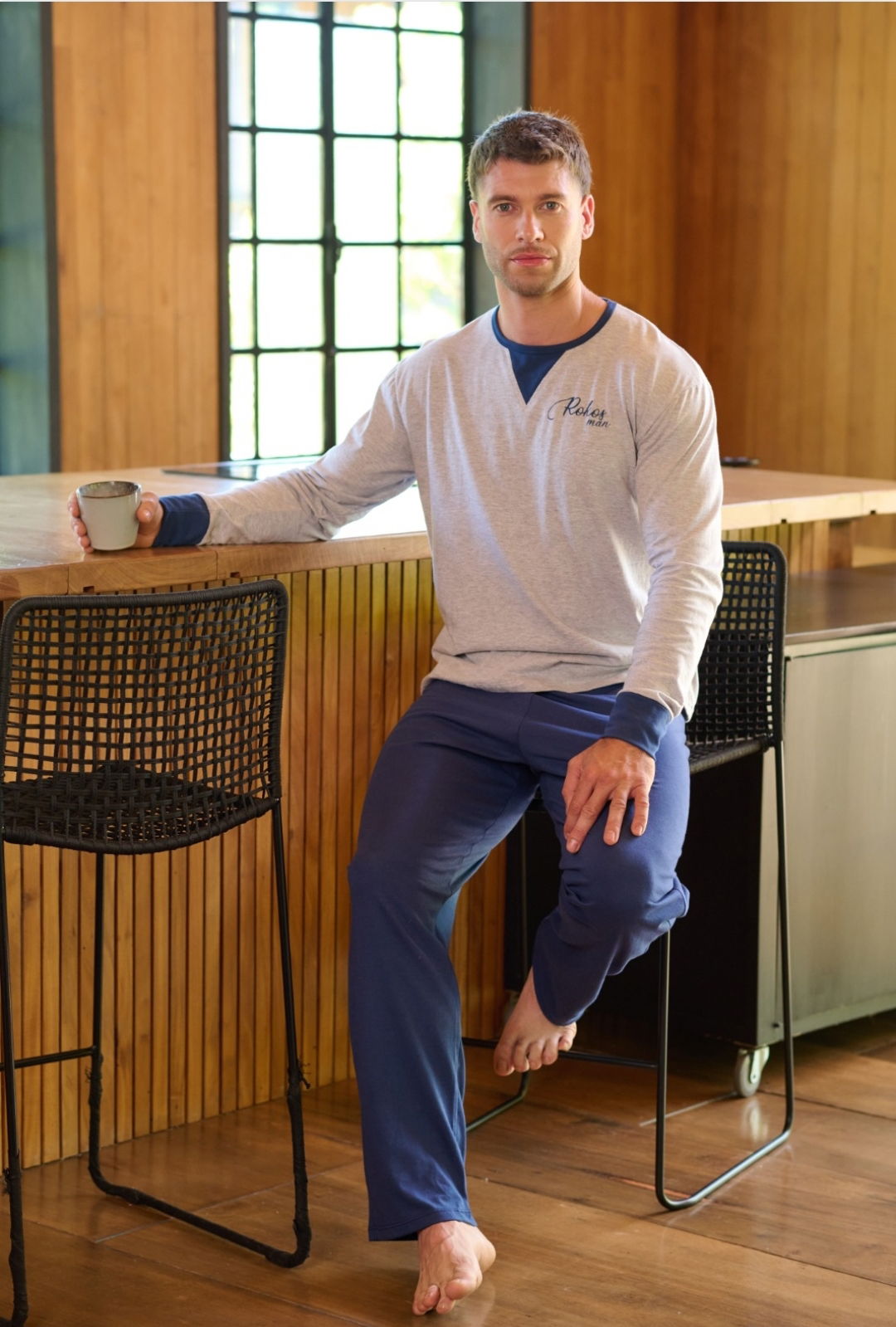 Pijama de hombre algodon con pantalon recto