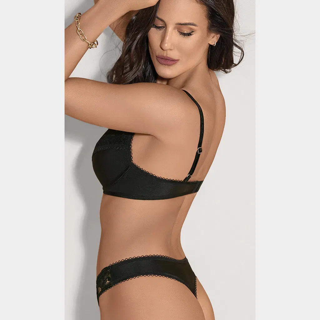 Este conjunto de microfibra  con detalle de puntilla y su corpiño soft sin push up, complementado con un dije personalizado que añade un toque único.