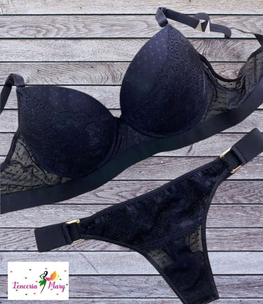 Conjunto Taza Soft Tul y Puntilla con Elastico Ancho Cola Less con Aplique Dorado