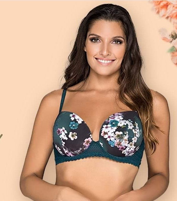 CORPIÑO TAZA SOFT DE. MICROFIBRA ESTAMPADA. Y PUNTILLA CON BASE Y. DETALLE EN ESPALDA.