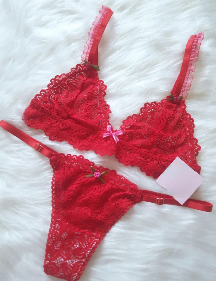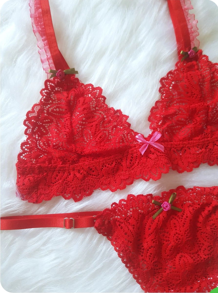 conjunto puntilla con voladito de organza en breteles y detalle de florcita ,lees regulable
