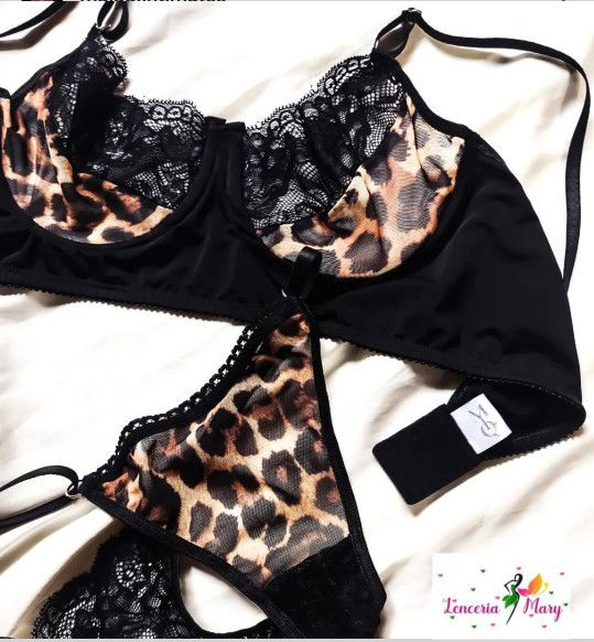 conjunto microtul animal print con detalles de puntilla con aro