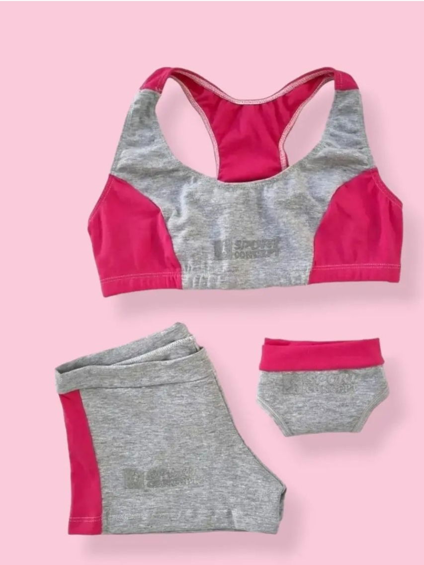 CONJUNTO DEPORTIVO 3 PIEZAS EN ALGODON LYCRA CON TOP, COLALESS Y SHORT